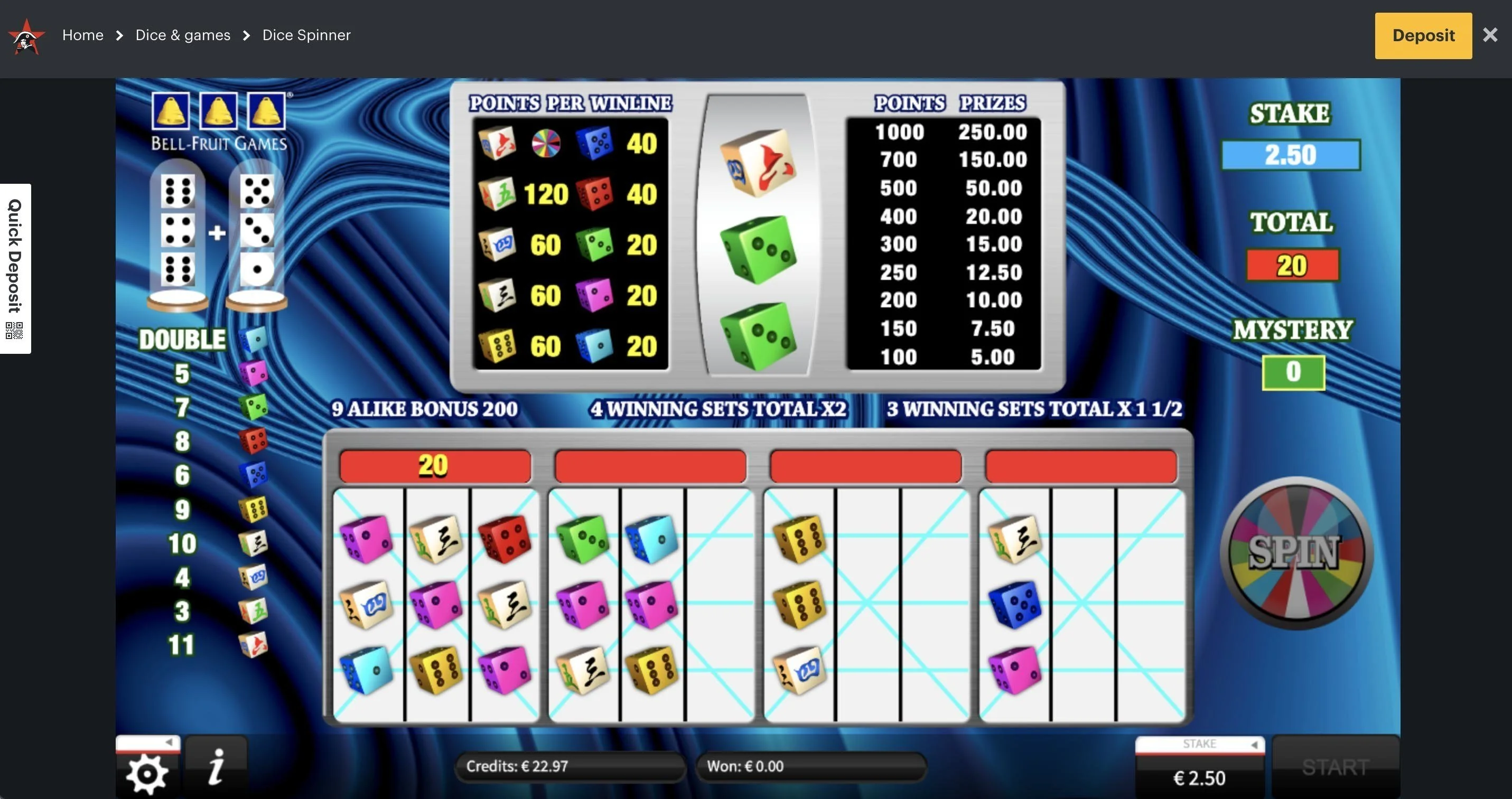 Net als bij slots probeer je ook hier rijtjes van gelijke symbolen te vormen. Hoe meer dezelfde symbolen naast elkaar, hoe hoger je score. De kleur van de dice speelt ook een rol: bepaalde kleuren leveren meer punten op. Je totale puntenaantal bepaalt uiteindelijk hoeveel je wint.